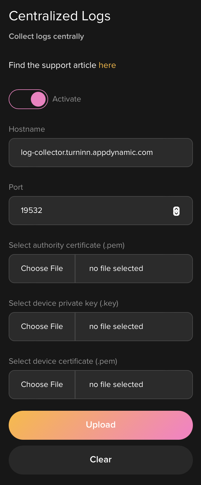 When enabled, the device will forward its logs to a remote log collector. This is useful for large deployments where logs need to be stored centrally.